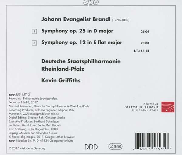 Johann Evangelist Brandl Symphonies Op.12 & Op.25Deutsche Staatsphilharmonie Rheinland-Pfalz, Kevin Griffiths